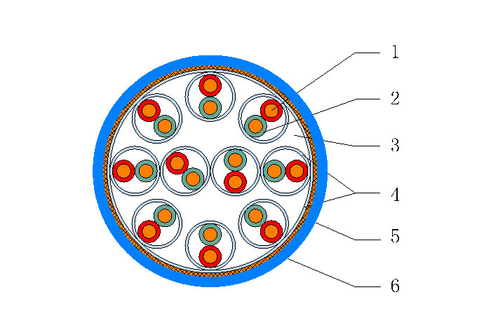 1-導(dǎo)體2-絕緣3-包帶4-繞包分屏蔽5-填充6-引流線
