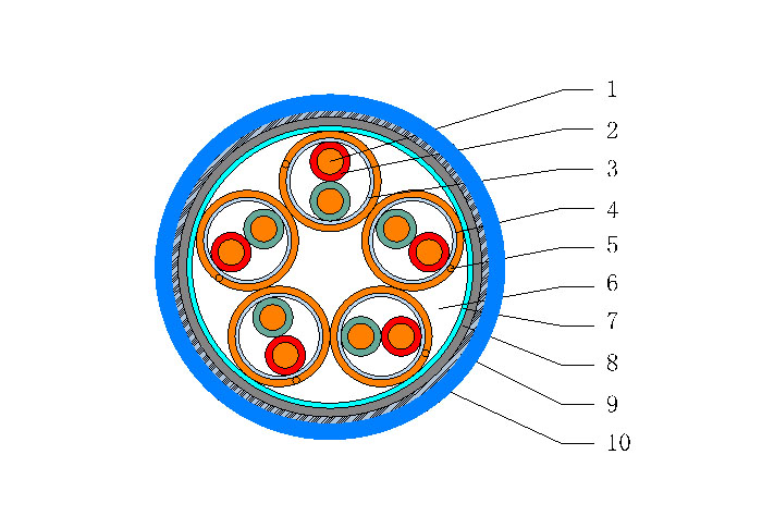 7-包帶8-內(nèi)護(hù)套9-鋼帶鎧裝層10-外護(hù)套
