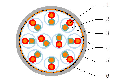 1-導(dǎo)體2-絕緣3-包帶4-繞包分屏蔽5-引流線6-填充