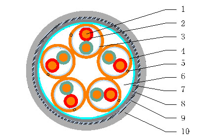 7-包帶8-內(nèi)護套9-鋼帶鎧裝層10-外護套