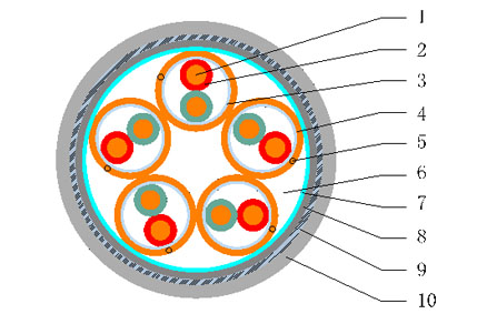 7-包帶8-內(nèi)護(hù)套9-鋼帶鎧裝層10-外護(hù)套