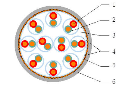 1-導(dǎo)體2-絕緣3-填充4-包帶5-總屏蔽6-外護(hù)套
