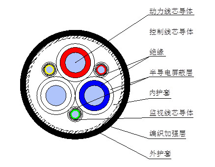 采煤機(jī)屏蔽監(jiān)視編織加強(qiáng)型橡套軟電纜 |