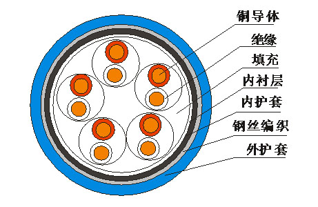 煤礦用聚乙烯絕緣鍍鋅鋼絲編織鎧裝聚氯乙烯護套通信電纜 |