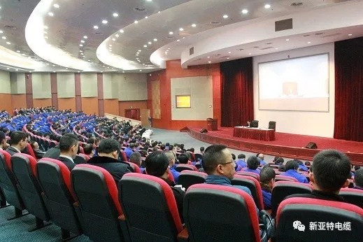 2018年元月1日,中央宣講團(tuán)成員、全國政協(xié)社會(huì)和法制委員會(huì)副主任施芝鴻到新亞特電纜股份有限公司作十九大精神宣講報(bào)告,新亞特電纜董事長徐頂峰主持報(bào)告會(huì)。