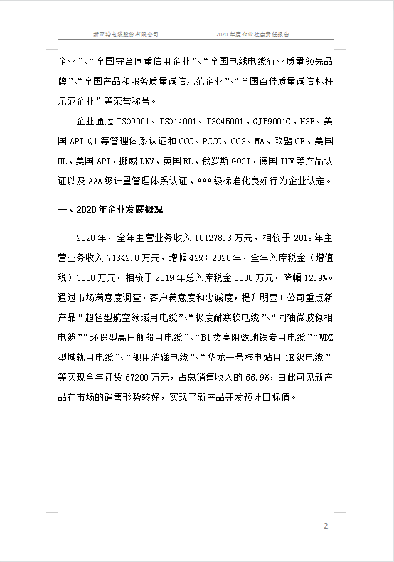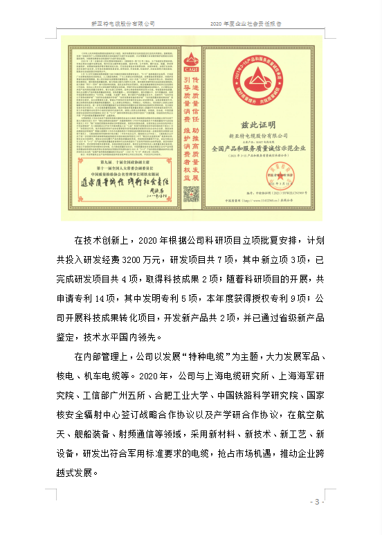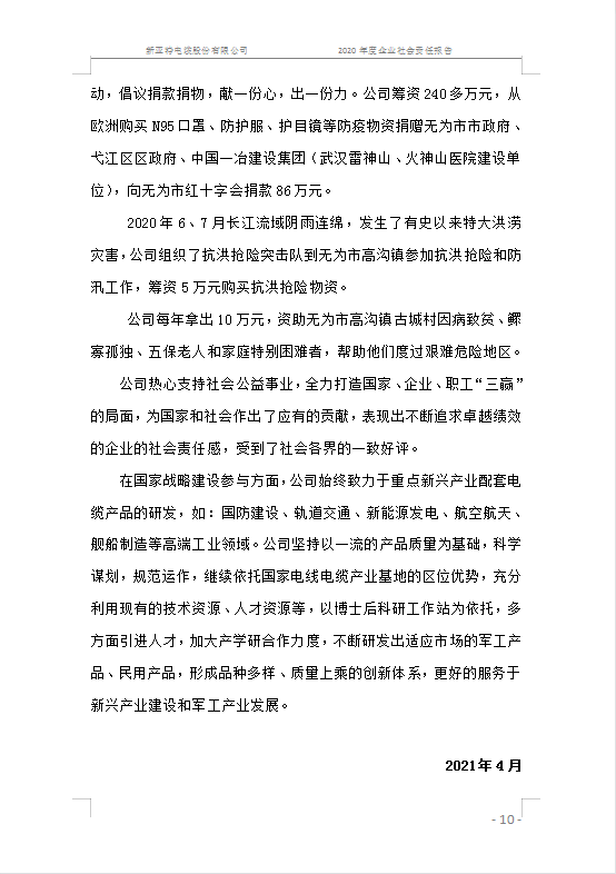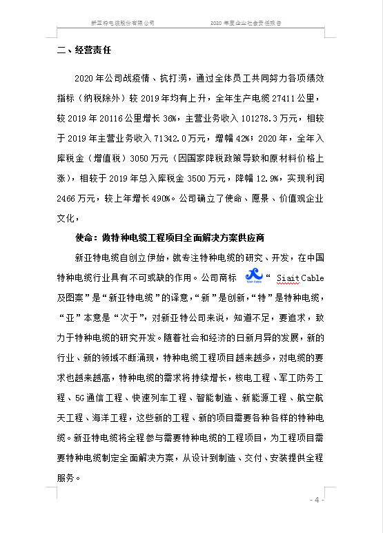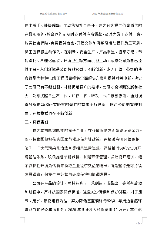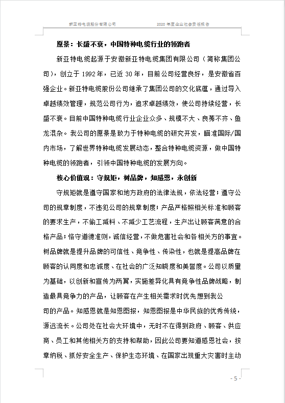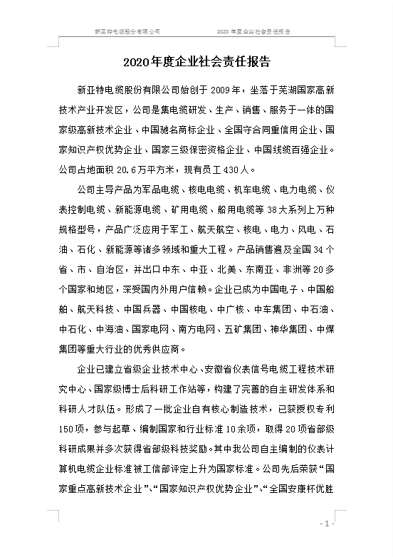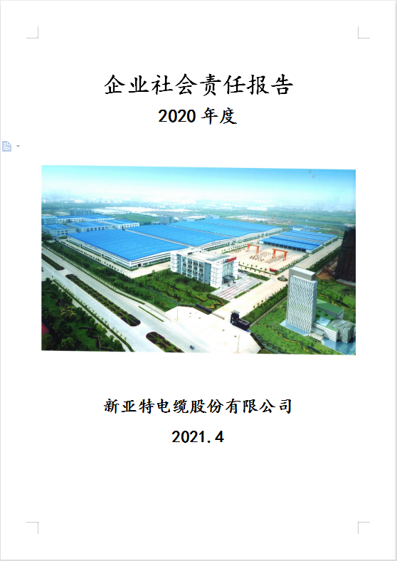 新亞特電纜股份有限公司企業(yè)社會(huì)責(zé)任報(bào)告