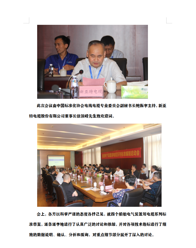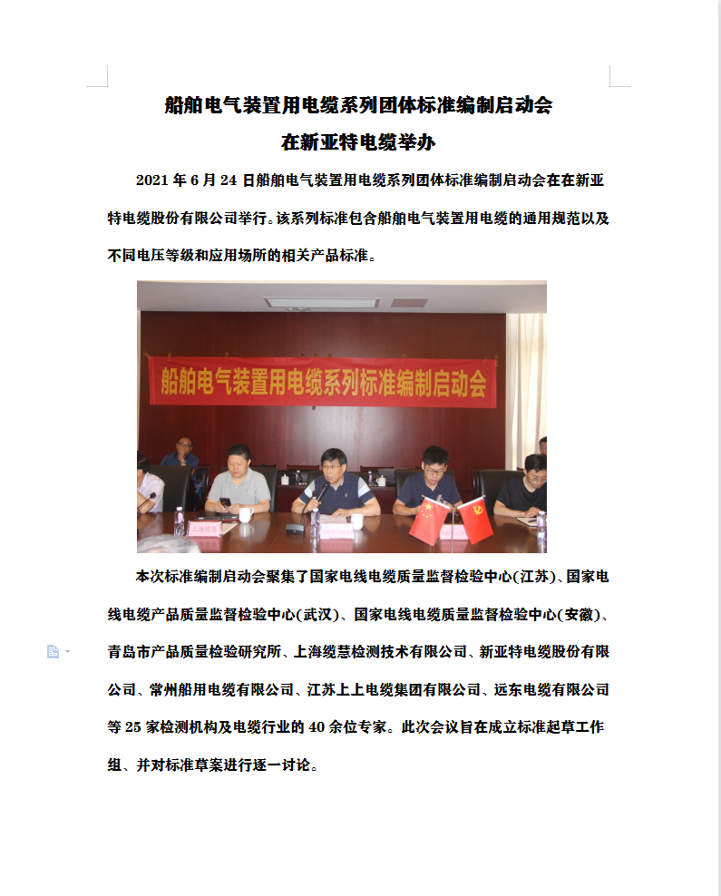 船舶電氣裝置用電纜系列團(tuán)體標(biāo)準(zhǔn)編制啟動會 在新亞特電纜舉辦